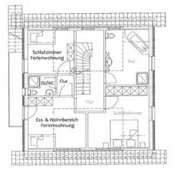 Hier haben wir für Sie den Grundriss der Ferienwohnung aufgeführt, die sich im Obergeschoss unseres Ferienhauses auf der Sonneninsel Juist befindet. Durch Anklicken des Bildes, öffnet sich dieses in einer größeren Ansicht. Die Ferienwohnung befindet sich auf dem abgebildeten Grundriss in der linken Hälfte.